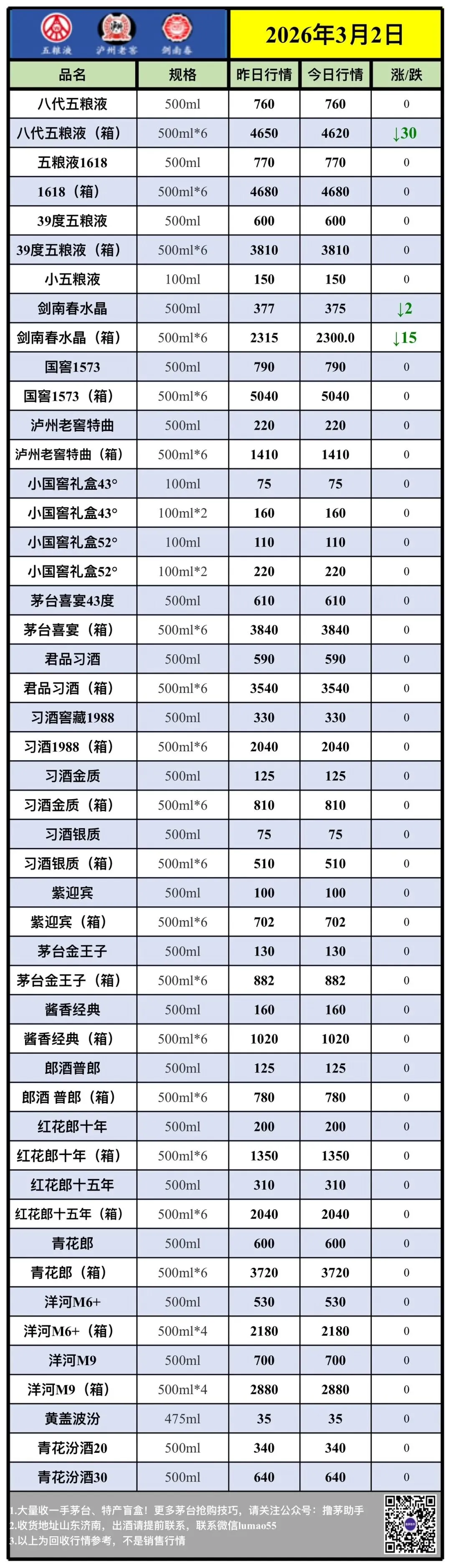 【茅粉行情】3月2日各大名酒批发行情参考价......