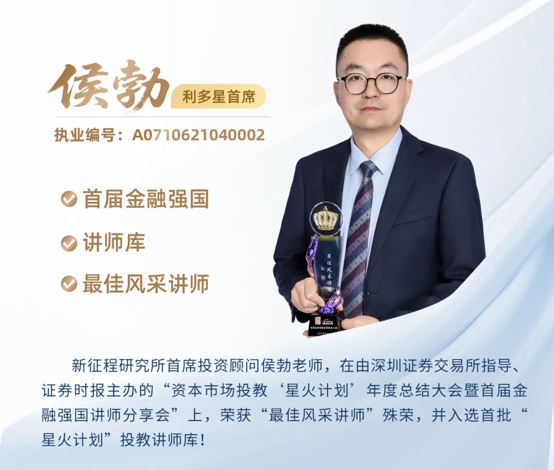 免责声明 本图文属于投资顾问侯勃:A0710621040002个人观点,所提供的信息仅供参考。在任何情况下,本节目的信息或所表述的意见均不构成对任何人的投资建议,无论是否已经明示或暗示,本节目不能作为道义的、责任的和法律的依据或者凭证。在任何情况下,主讲嘉宾亦不对任何因使用本节目资料中的任何内容所引致的任何损失负任何责任。 |