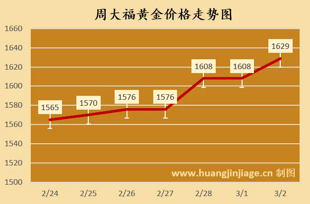 周大福 | 黄金价格 | 1629 | 涨21元 |