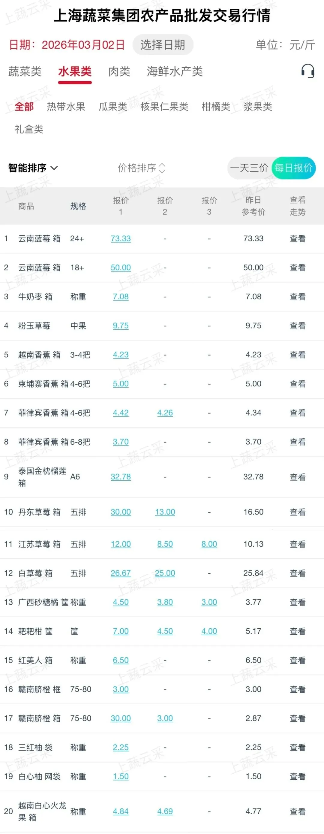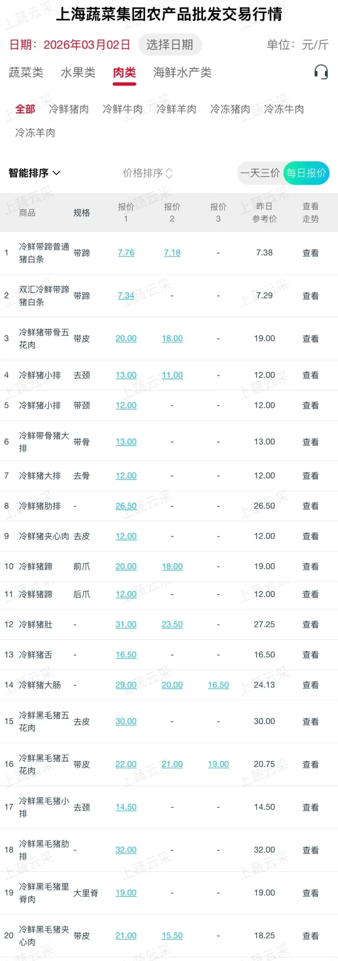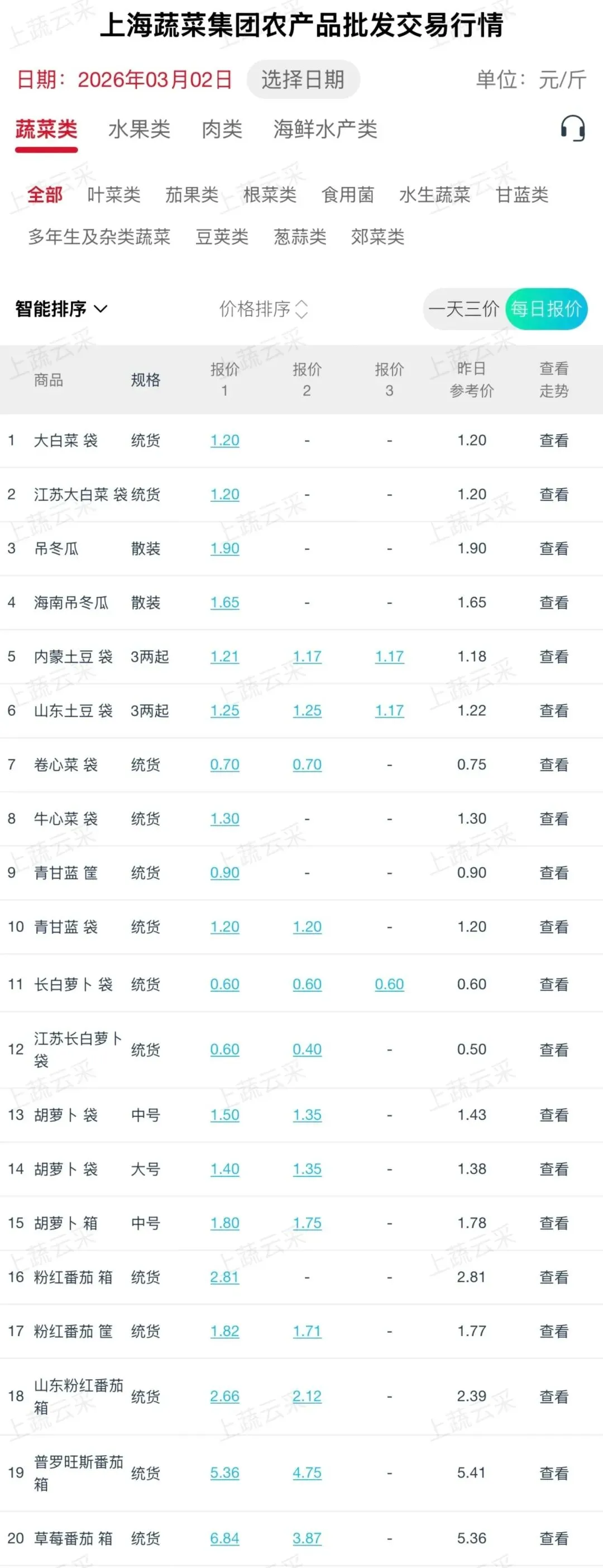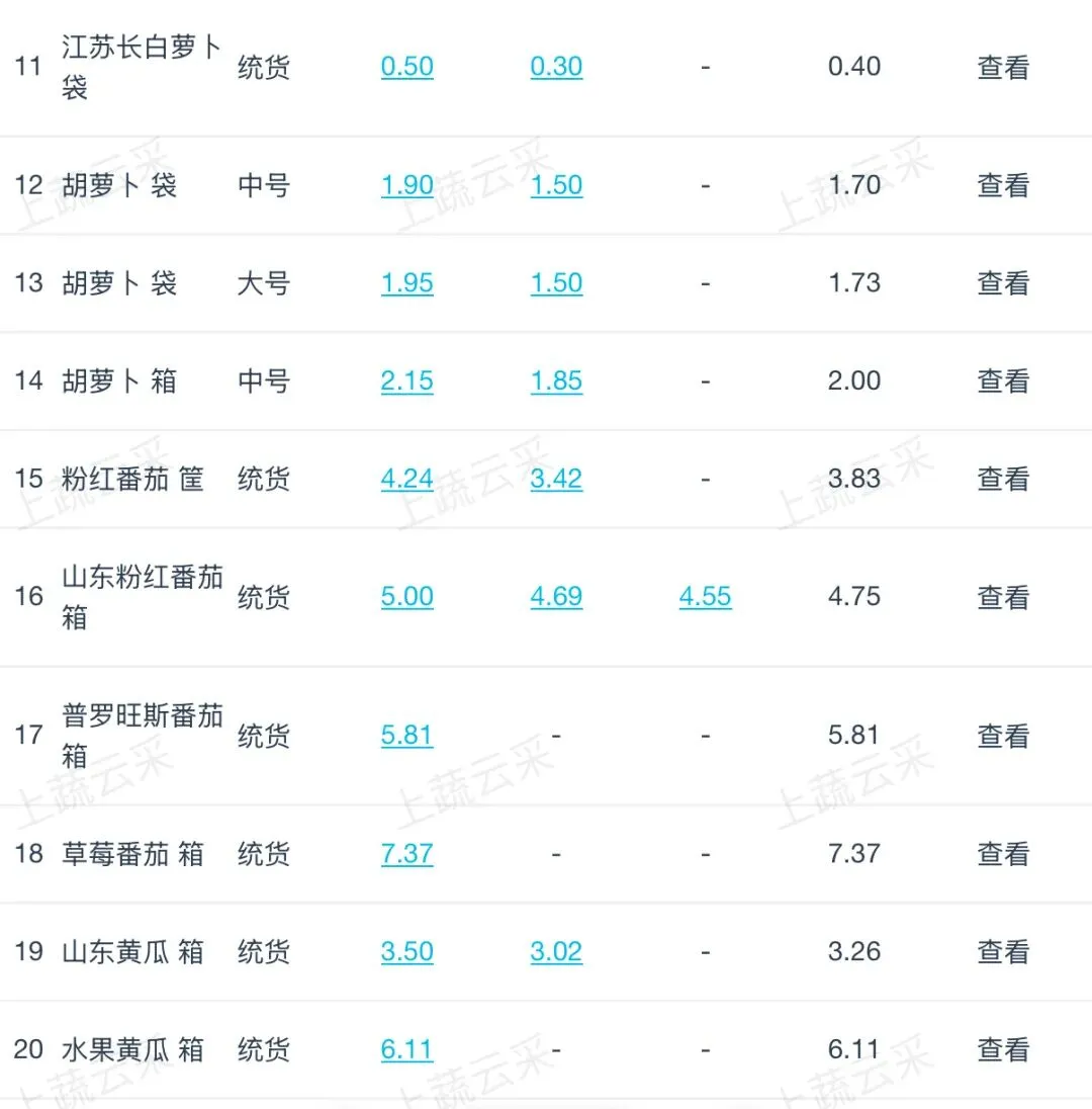 蔬菜、水果、肉、海鲜水产等更多品类交易行情
