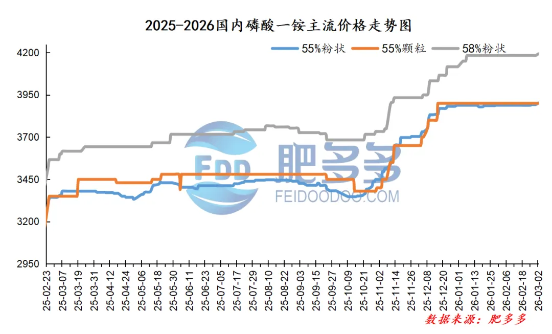 3月2日:东北磷酸一铵市场市场55粉送到3950-4000元/吨附近,报价持稳。