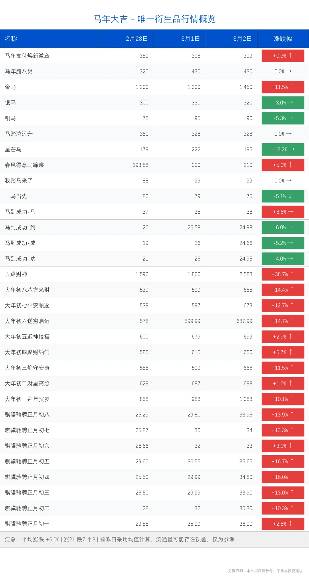 >唯一衍生品行情概览 03.02