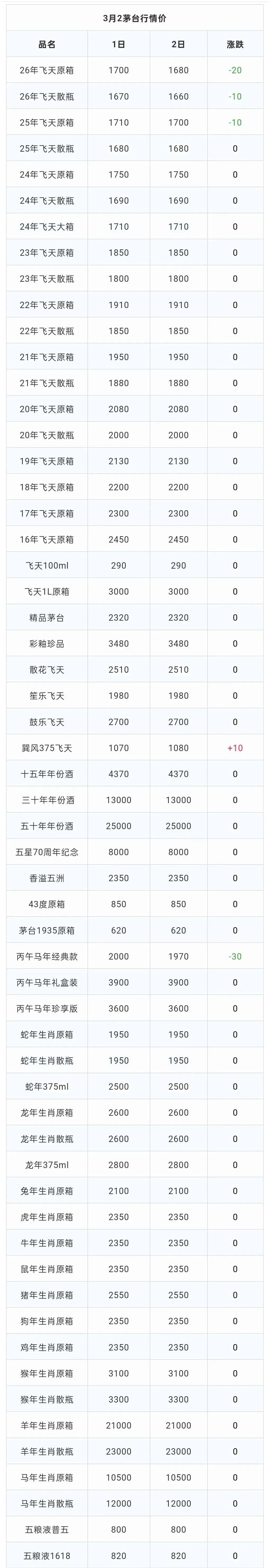 由于茅台市场独特的供求关系,茅台价格每日的茅台价格都有所变动