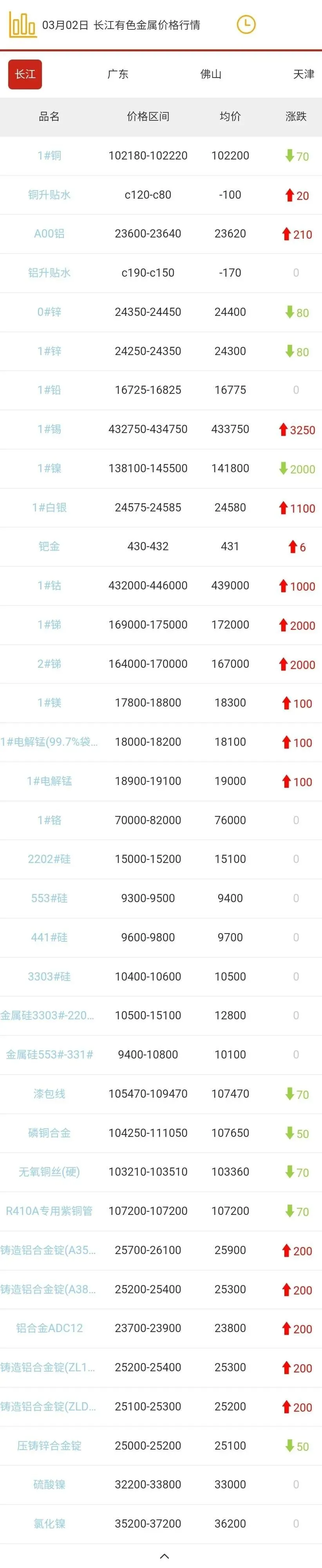 >2026年03月02日有色金属现货行情