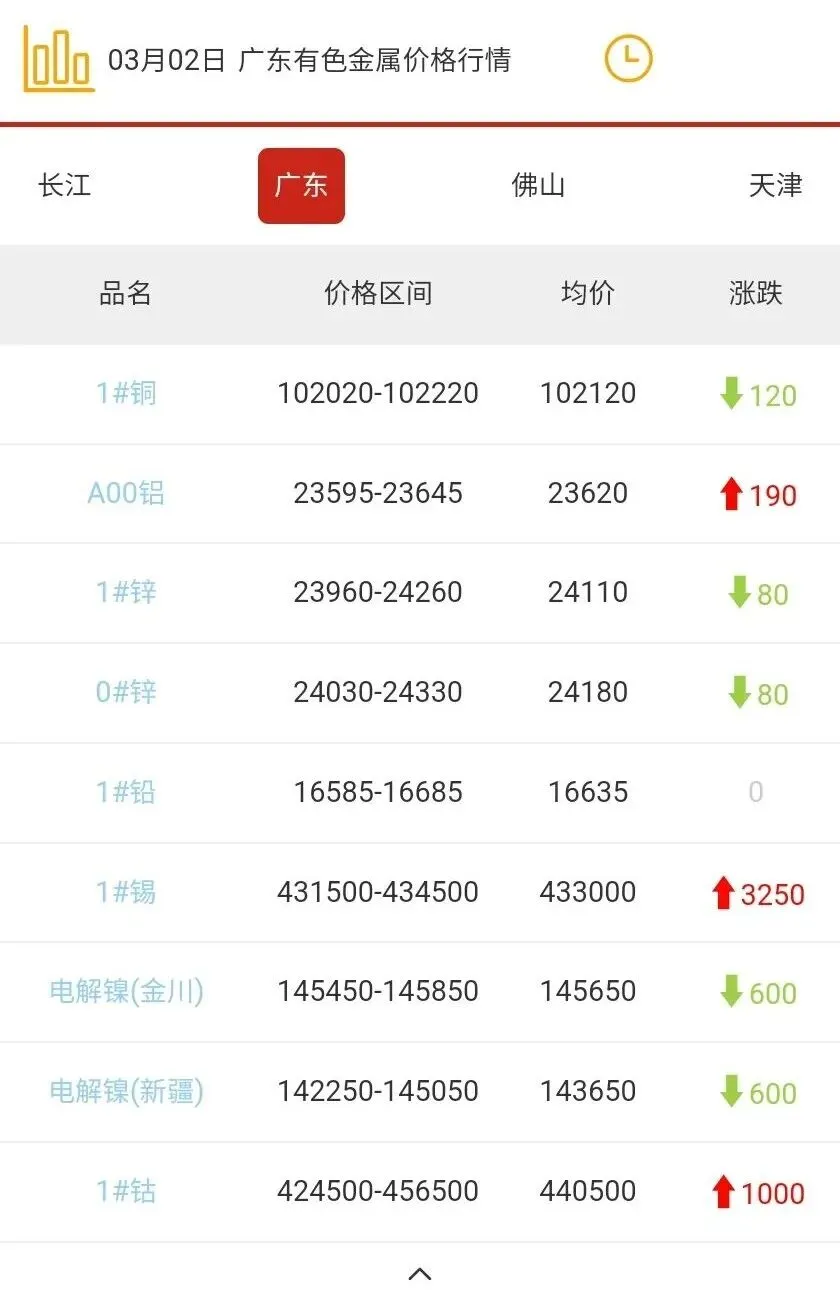 广东有色金属价格行情