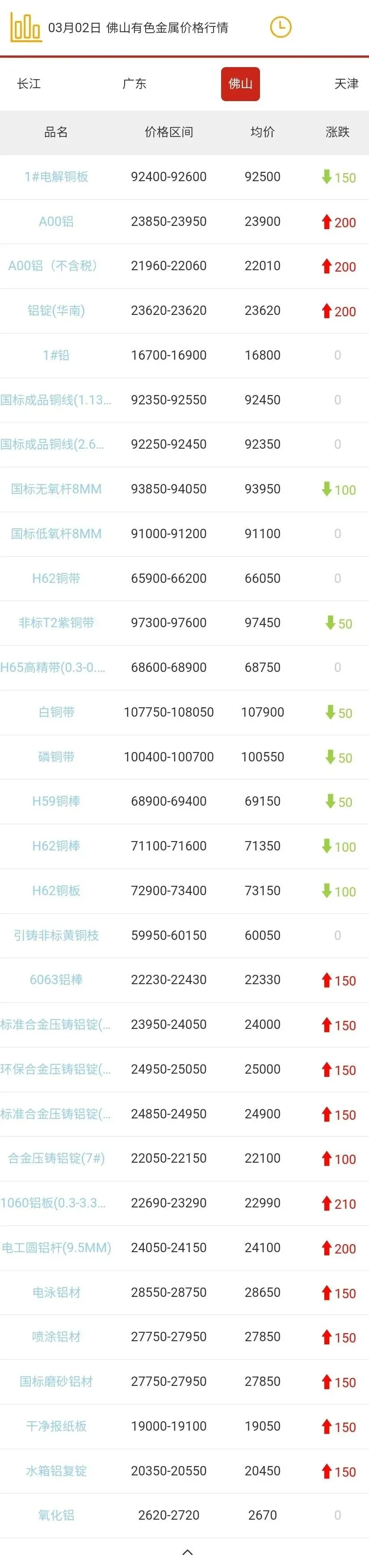 佛山有色金属价格行情
