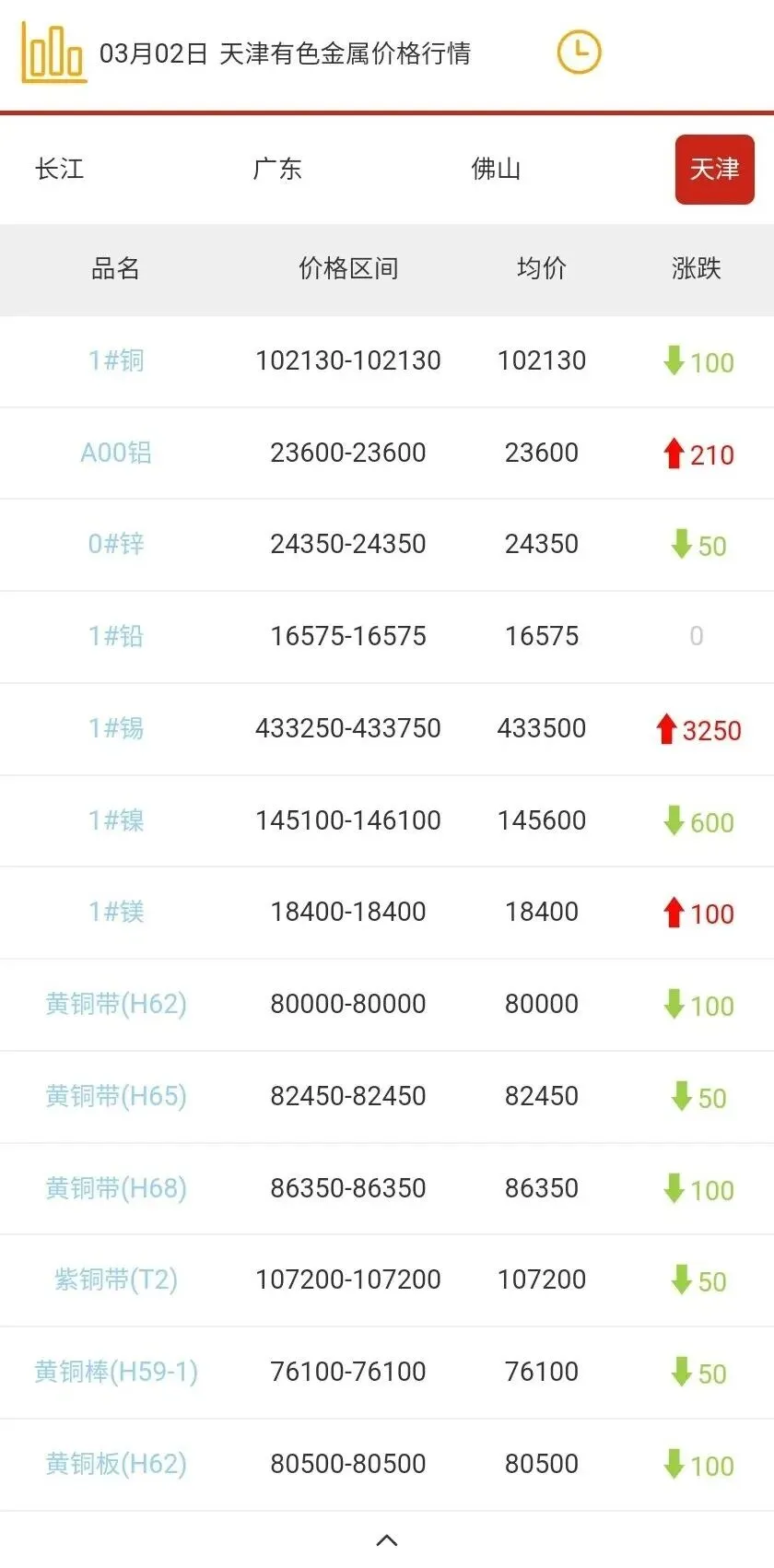 天津有色金属价格行情