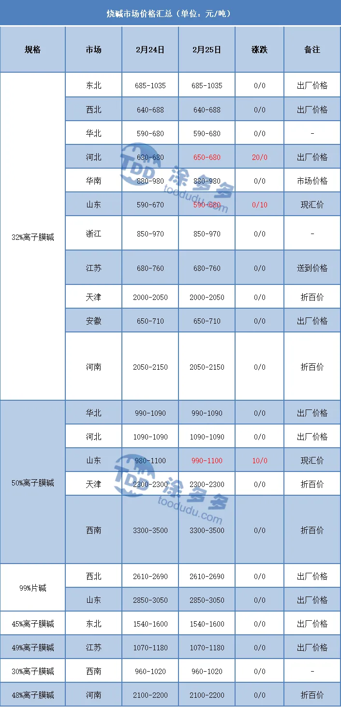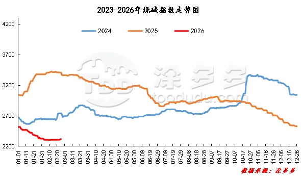 据涂多多数据测算,2月25日国内烧碱指数为2320.77,较上一个工作日上涨3.21,幅度在0.138%。