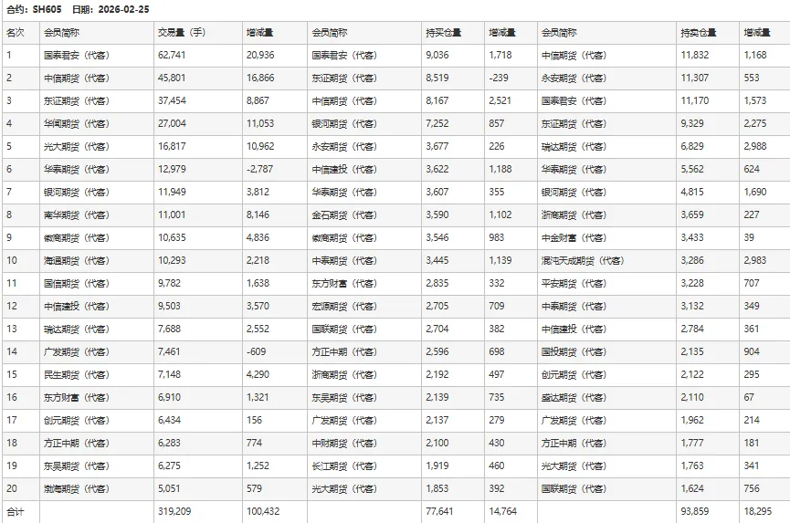 2月25日SH2605合约开盘价:2146,最高价:2173,最低价:2136,持仓量:140547,结算价:2159,昨结算:2157,涨:2,收盘价:2167,日成交量:242102手,沉淀资金:14.62亿,资金流入:2809万。