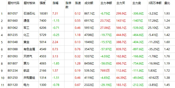 油气:身位板2个,领涨2个,技术套利2个,弹性套利2个,中军三桶油。