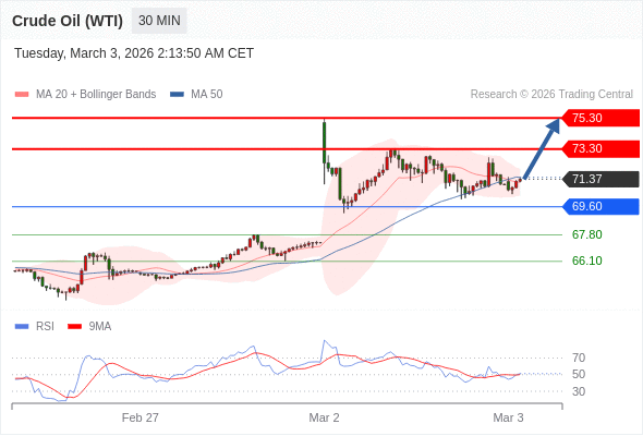 No.1 | 在 69.60 之上,看涨,目标价位为 73.30 ,然后为 75.30 。 |