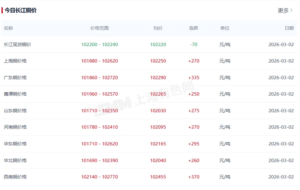 >今日铜价多少钱一斤最新行情,长江铜价今日铜价走势图(2026年3月3日)