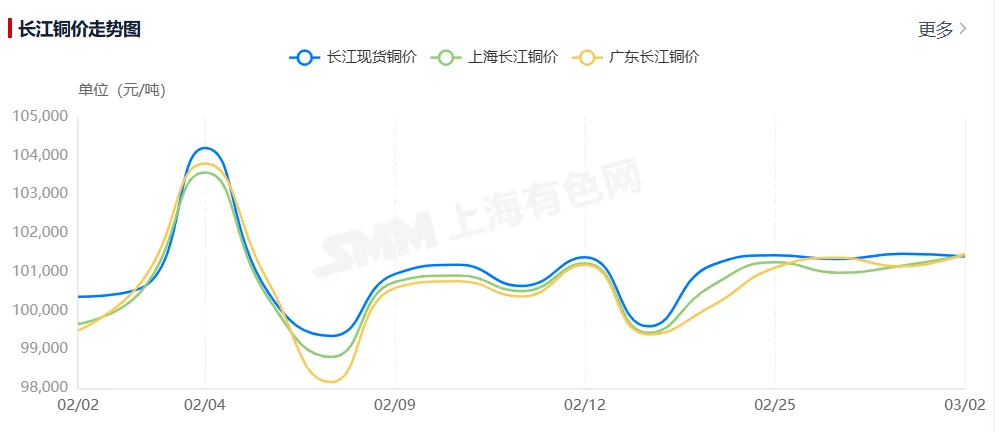 今日铜价多少钱一斤最新行情,长江铜价今日铜价走势图(2026年3月3日)