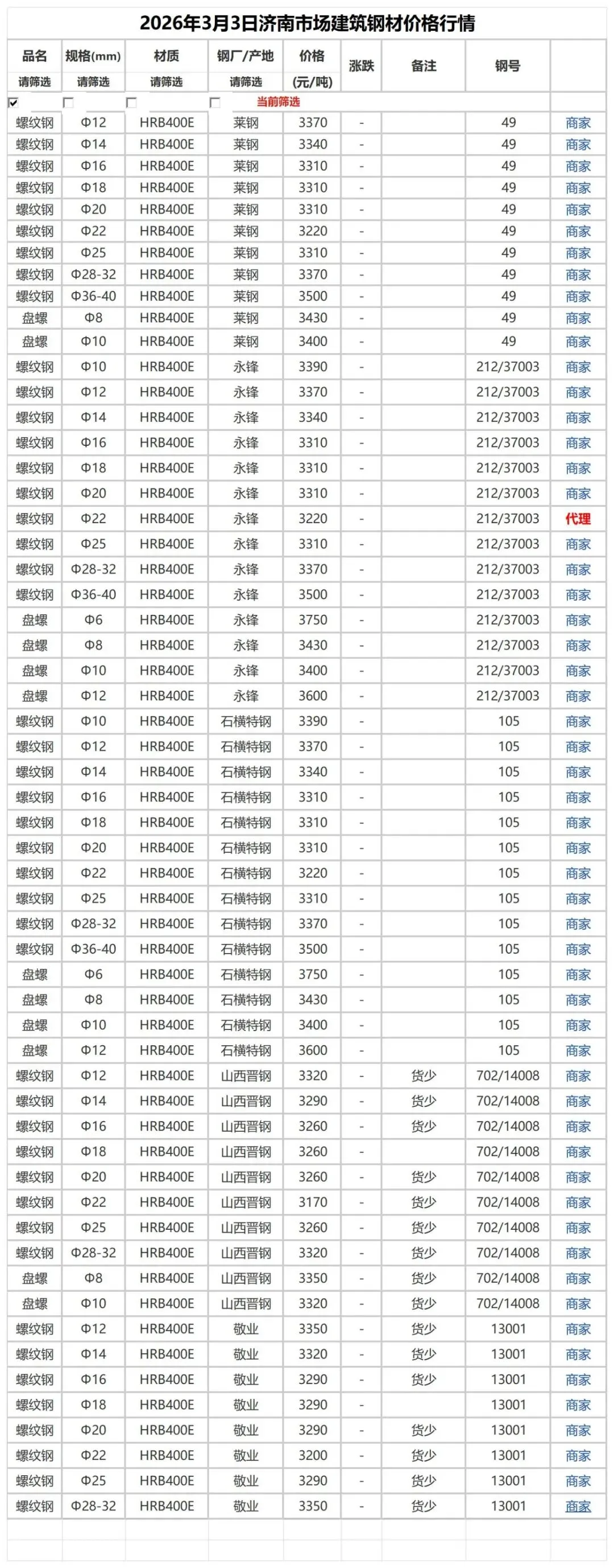 >3月3日市场建筑钢材价格行情