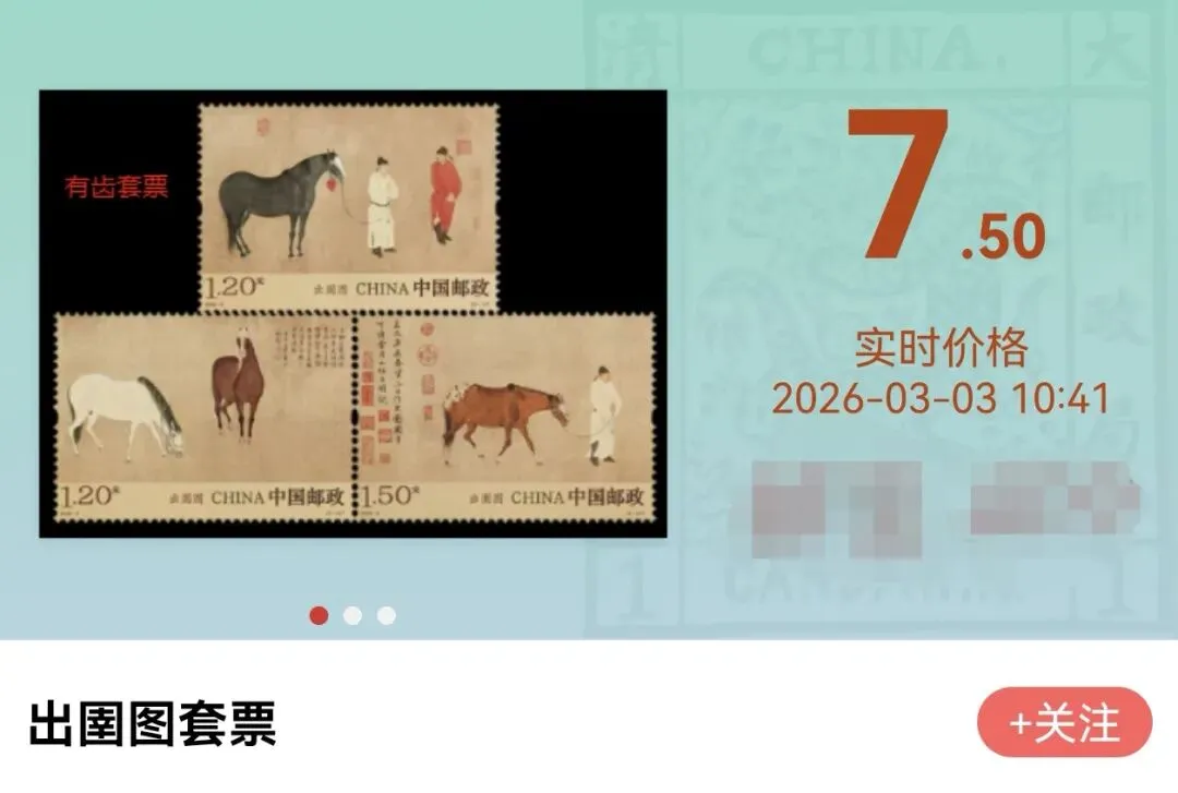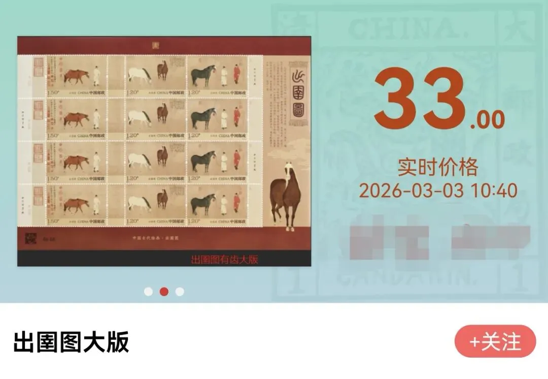 现在,《出圉图》邮票的首日行情正式出炉,虽然说相比期货价格还是有所下跌,但仍然有溢价,套票和大版的价格均翻了将近一番: