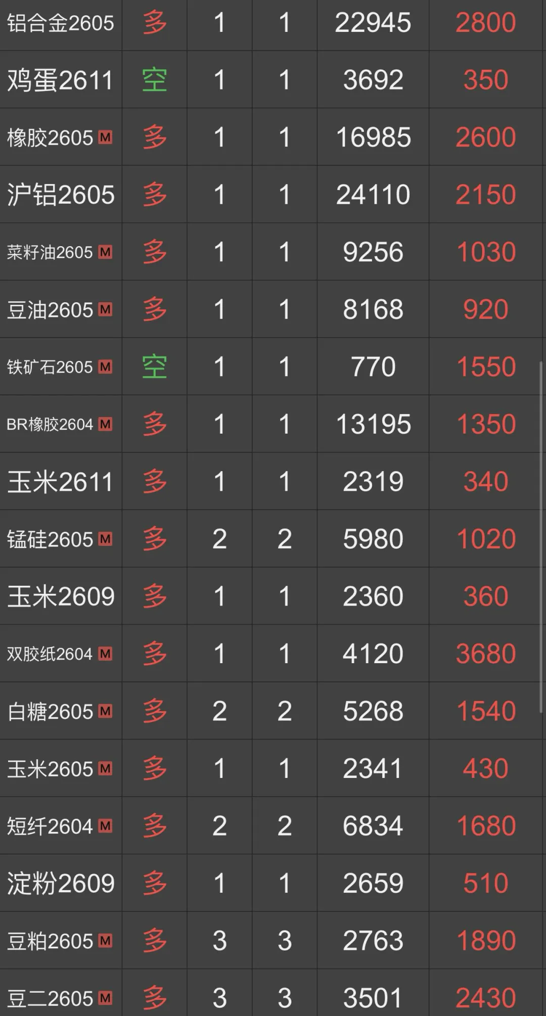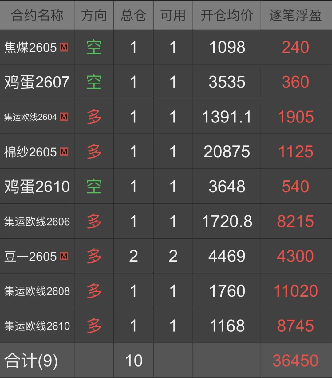做多沥青,铝,棕榈,丙烯,欧线04。