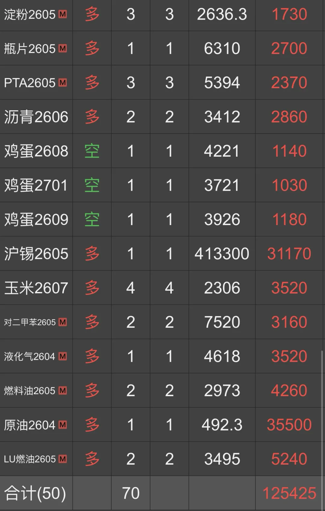 原油和欧线是收益最大的两个品种。