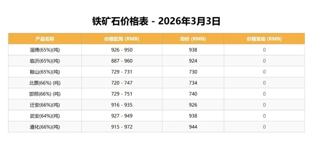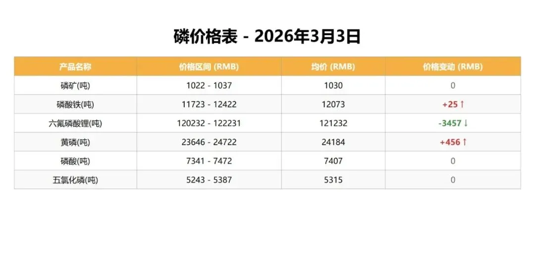 今日铁矿石价格整体稳定,各地区各品位价格均未发生变动。磷产品市场涨跌互现,磷酸铁和黄磷价格小幅上涨,而电池级原料六氟磷酸锂价格则继续下调,其余品类价格平稳。