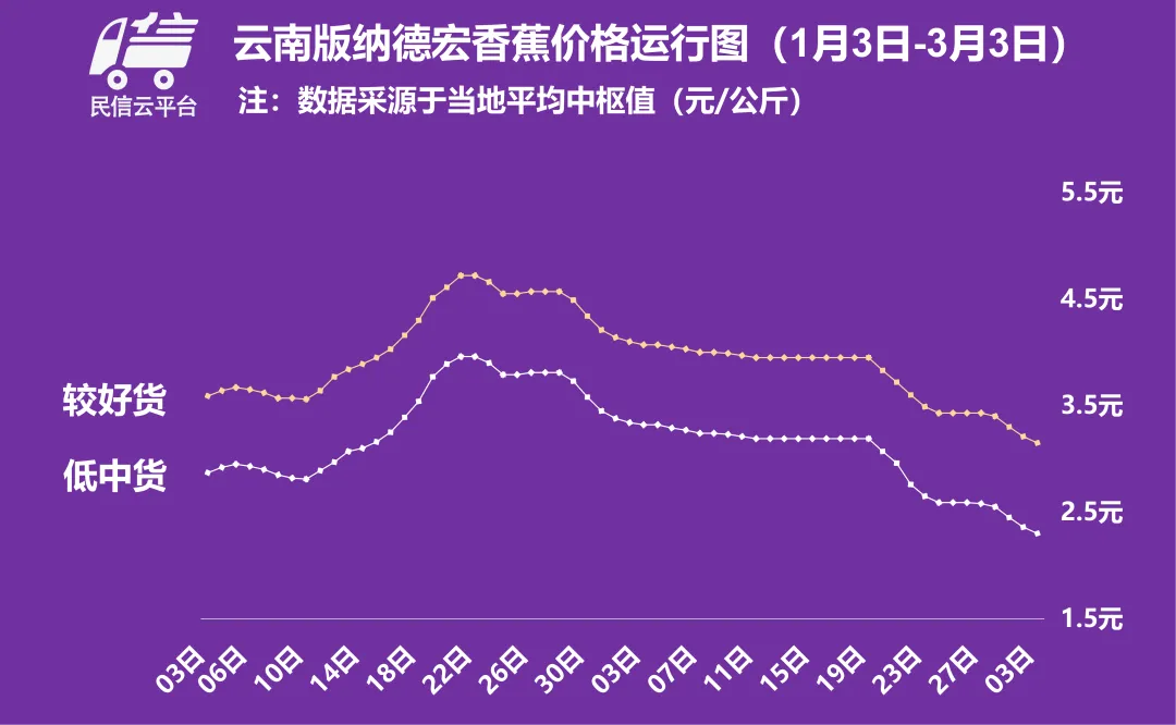 云南版纳州与德宏州 大体弱稳 中枢值下行0.06元/公斤