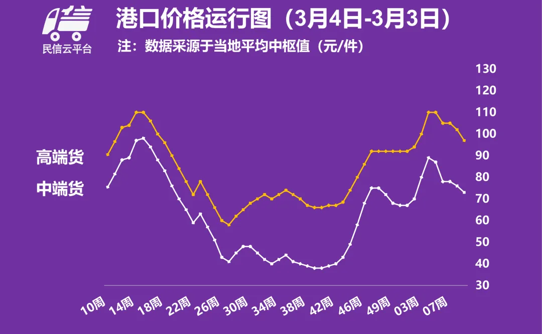 本周各大港口 售价下调2-5元/件不等