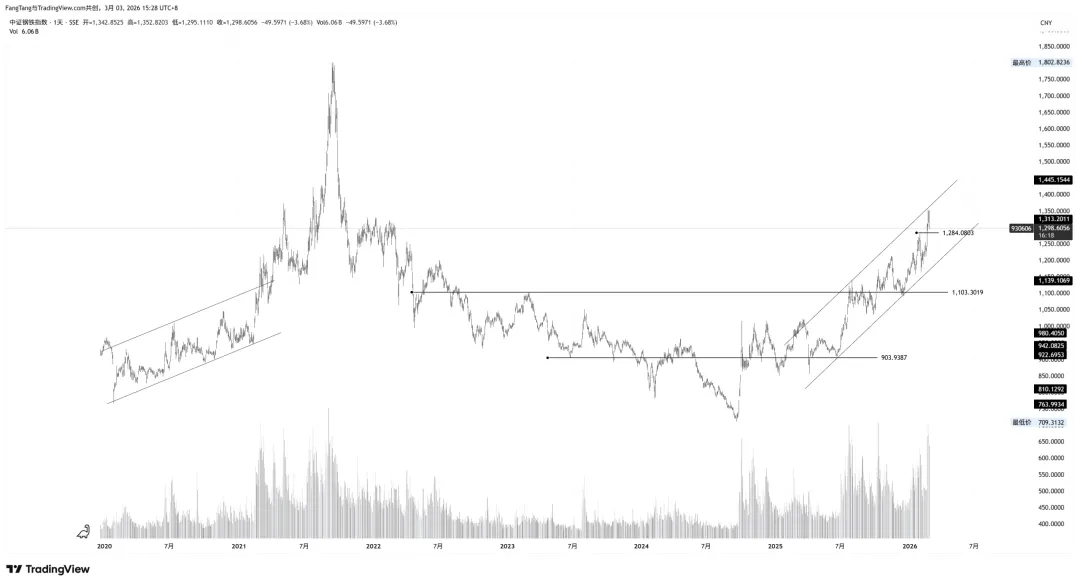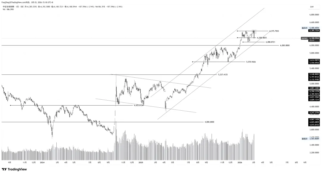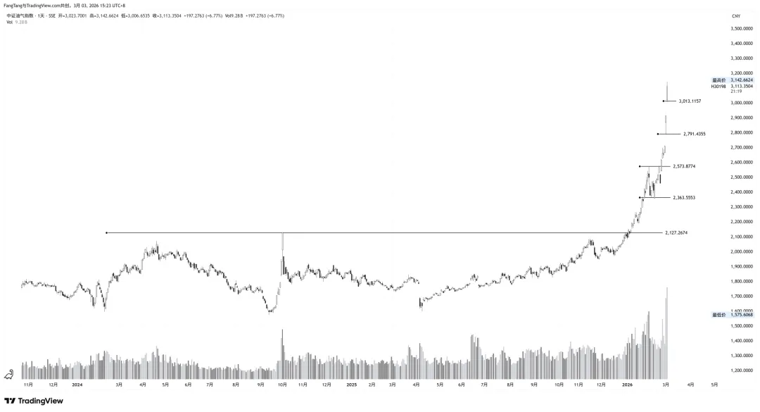 继续卡3000点的位置跟踪止盈即可,有格局一些其实应该卡缺口下沿。它并没有白银、航天那么疯狂,我认为不至于A,有持仓可放心。没持仓我也是一直不鼓励追…