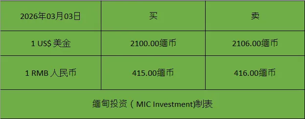 >缅甸今日(03日)股市汇市行情