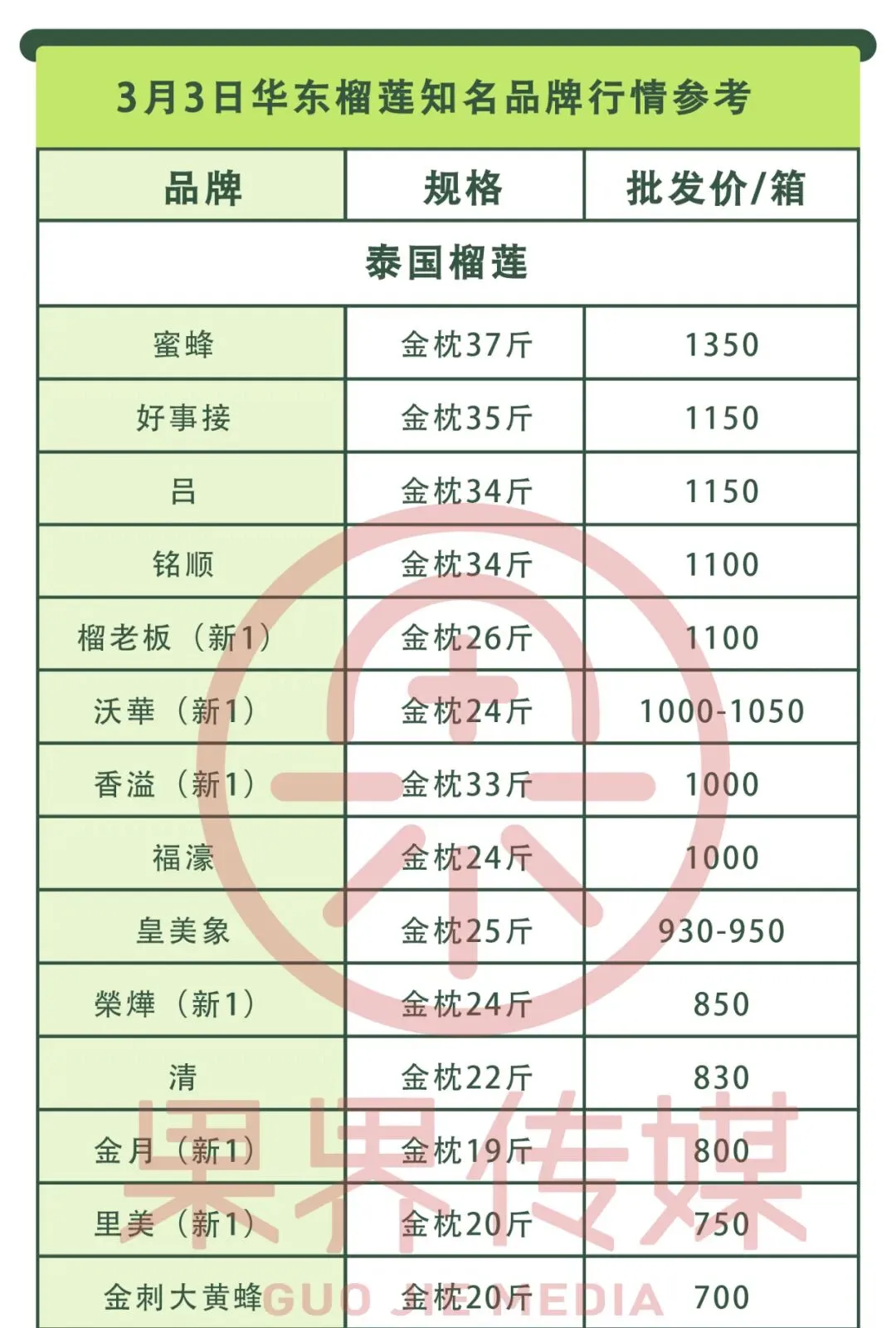 3月3日果界传媒华东一级市场每日水果行情