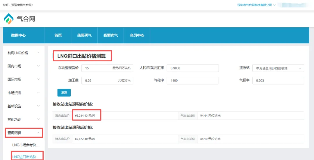 可登录气合网数据中心->查询测算->LNG进口出站价格测算 查看https://qihewang.com/dataCenter/predictionLngEntrance