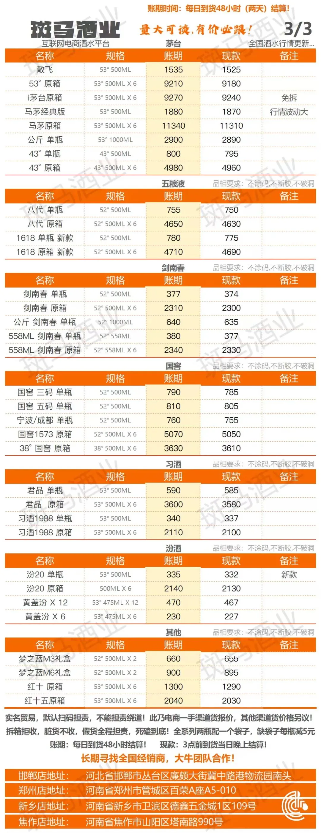 >斑马酒业 26/3/3采购行情报价