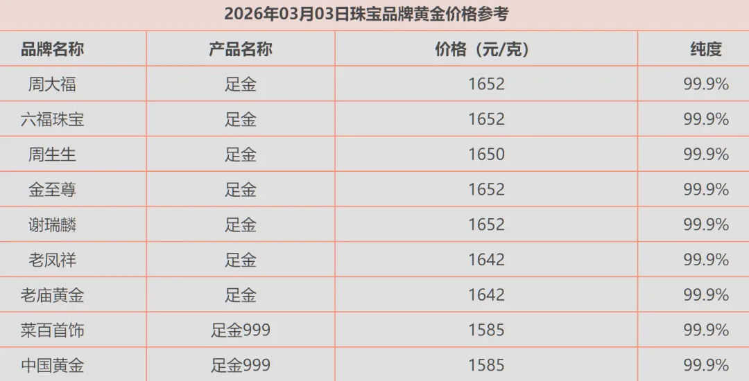 >今日金价行情(2026/3/3)今日黄金价格多少钱一克,金价最新行情