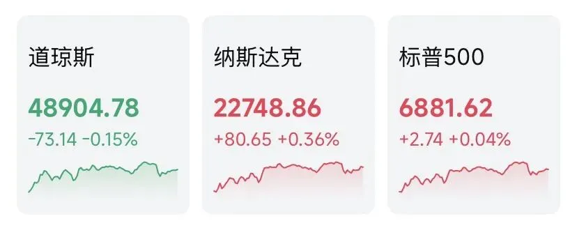 • 道琼斯:48904.78,-0.15%;早盘最深跌近600点,V型收窄。