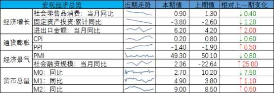 经济增长方面,春节假期原因、PMI、进出口、社会消费品零售等数据均未公布,但2月EPMI中国新兴产业44.6,环比值-5.4,同比值-4.4,与往年均值差值-7.7;通胀方面,CPI同比+0.2,PPI同比-1.4%降幅收窄,但整体仍偏弱。
