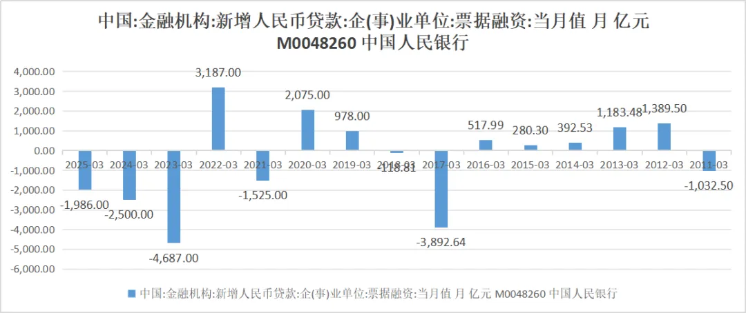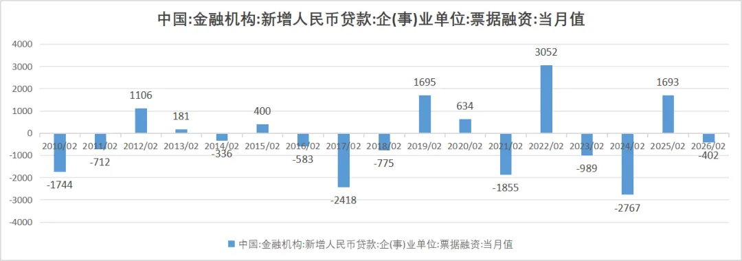 从信贷缺口角度看,历史上3月表内票据融资负值居多,常规介于-2500亿--4000亿之间,整体看,3月票据到期供给压力不大。