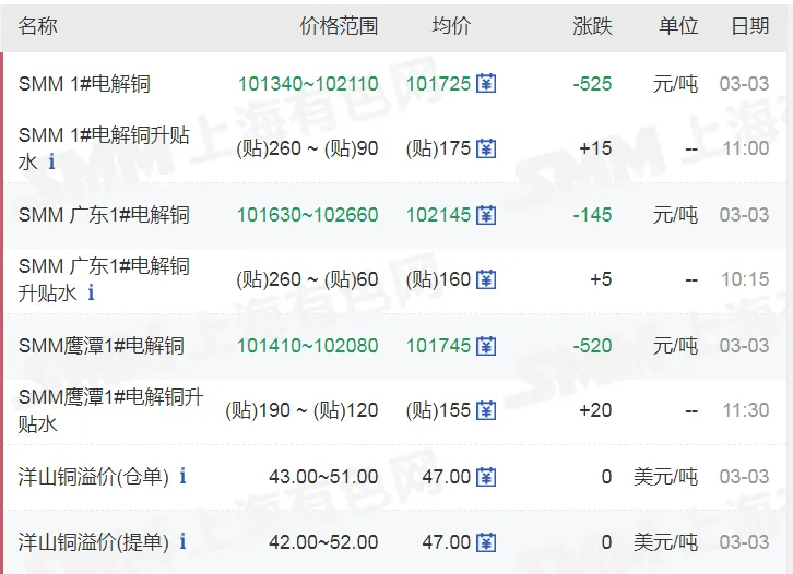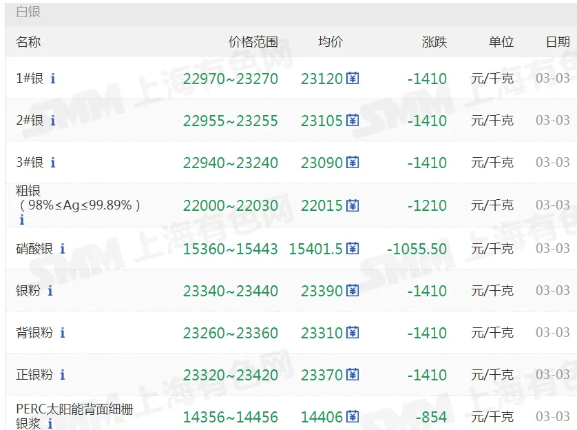 >20260303金银铜铝价格行情