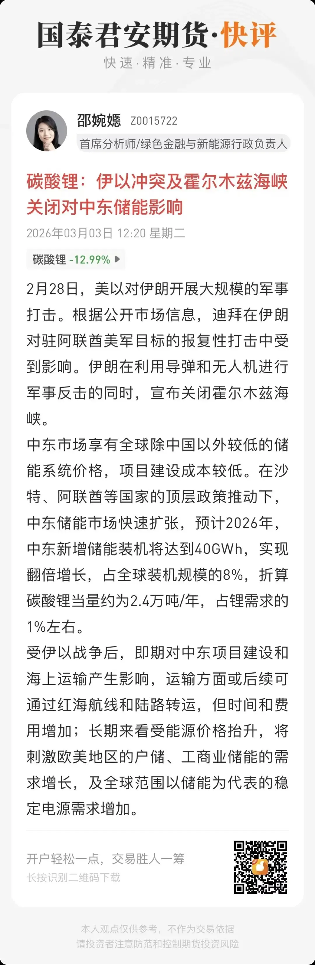 根据《证券期货投资者适当性管理办法》,本报告发布的观点和信息仅供国泰君安期货的专业投资者参考。若您并非国泰君安期货客户中的专业投资者,为控制投资风险,请取消订阅、接收或使用本报告中的任何信息。本报告难以设置访问权限,若给您造成不便,敬请谅解。请您根据自身的风险承受能力自行作出投资决定并自主承担投资风险。