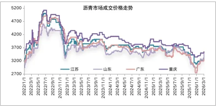 小结:当前美国、以色列与伊朗的冲突持续发酵,霍尔木兹海峡航运陷入实质性停滞,多家国际航运企业已暂停船舶通行,大量油轮停航避险,而伊朗、沙特等中东国家正是委内瑞拉原油供应事件后,国内地炼及部分主营炼厂的核心原油替代供应来源,其中山东地炼原油采购中伊朗油占比高达20-30%,叠加冲突推升的原油价格、航运保费及运费暴涨,国内炼厂原料采购成本显著增加,进而引发原料供应担忧,截止目前来看,各炼厂生产端暂未受到影响,但也均未释放4月份沥青合同,对后期的排产只能报走一步看一步的心态,如海峡持续受到袭扰,则成本传导下沥青价格中枢或将继续上移。