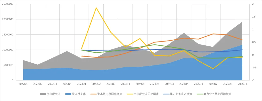 后续继续关注AI营收是否如预期增长带来现金流快速恢复(下面右图竖线右侧那样),否则AI增长逻辑证伪,叠加CAPEX总量见顶,泡沫破裂。