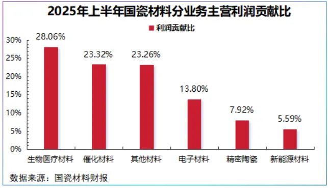 业务层面,国瓷材料形成了电子材料、催化材料、生物医疗材料、新能源材料、精密陶瓷、数码打印及其他材料在内的六大业务。