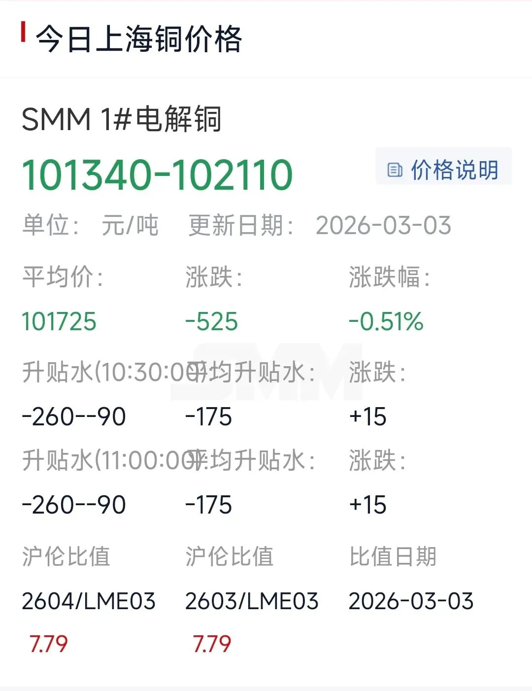 2026年3月3日铜价呈现内外盘同步回调态势,现货市场小幅跟跌,废铜市场则逆势抗跌。具体情况如下: