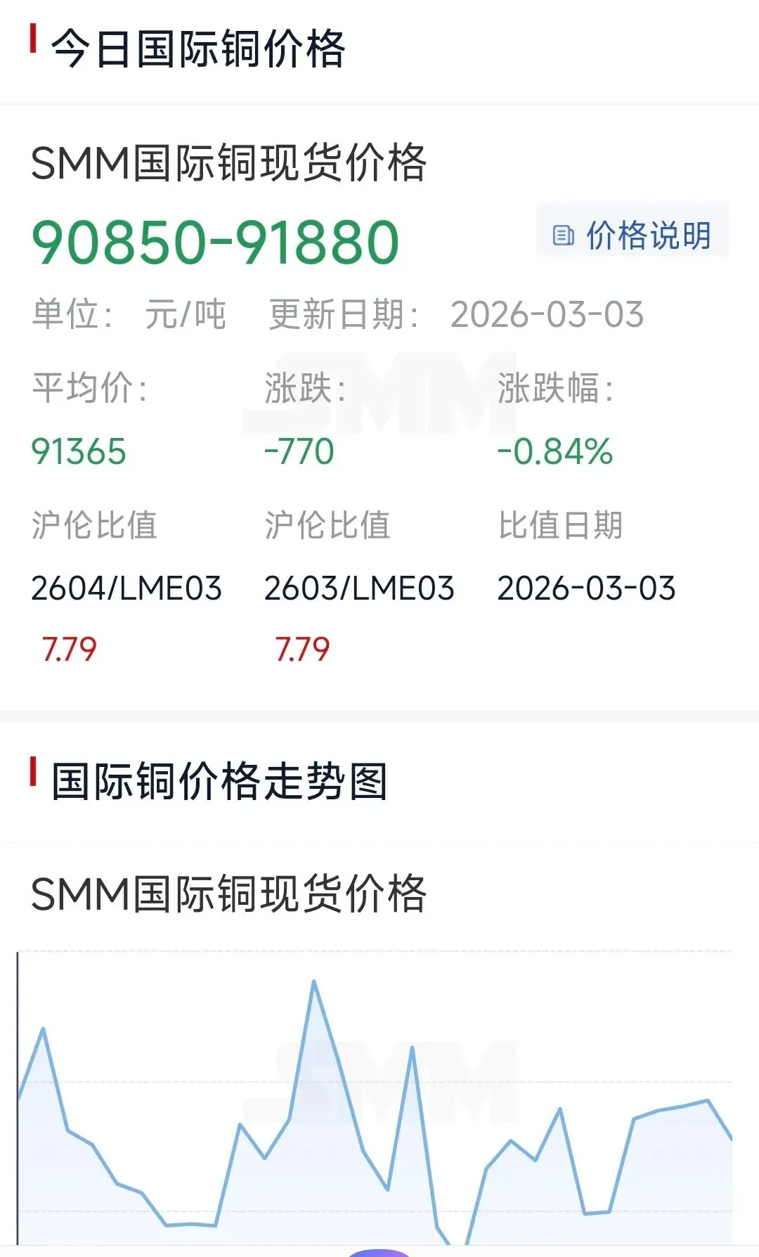 2026年3月3日铜价呈现内外盘同步回调态势,现货市场小幅跟跌,废铜市场则逆势抗跌。具体情况如下: