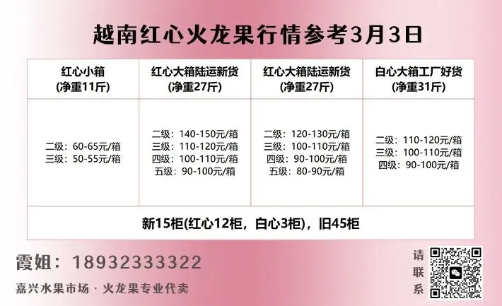 >3月3日华东水果市场榴莲、椰青、火龙果行情参考