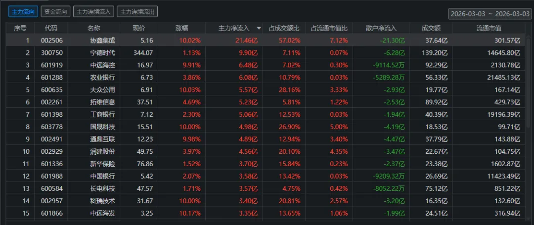 油运涨停9家。分别是:8天5板的招商轮船(VLCC油运+LNG船舶+干散货运输+原油运输+业绩增长)、8天4板的中远海能(VLCC油运+LNG船舶+拟并购+天然气运输)、6天3板的招商南油(油气运输+燃供及化学品贸易)、2天2板的南京港(原油中转+港口物流+仓储服务+数据要素+南京国资)、宁波海运(港口航运+拟增持+电煤/矿石运输+高速)、宁波远洋(LNG+航运+干散货货运代理+拟20亿元投建4艘集装箱船)、中远海发(油运+船舶租赁+集装箱制造+集装箱租赁)、国航远洋(航运+油运+于散货运输+北交所)、锦江航运(国际集装箱航运+业绩增长+国资)。