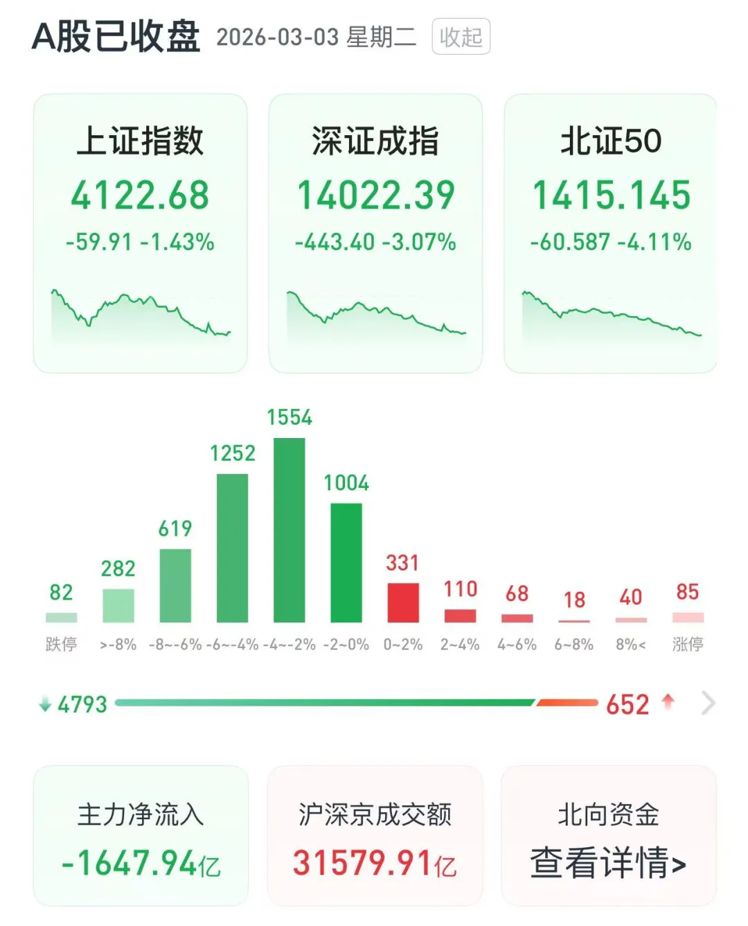 【周一】2026/3/3大A补跌行情(伊美以大战)