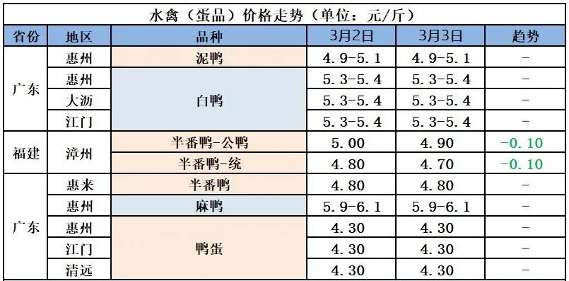 白鸭种蛋报涨 ,实蛋情绪偏好,包苗保价零星交易蛋价相对稳定。