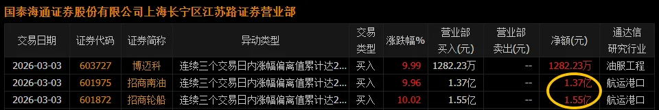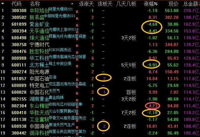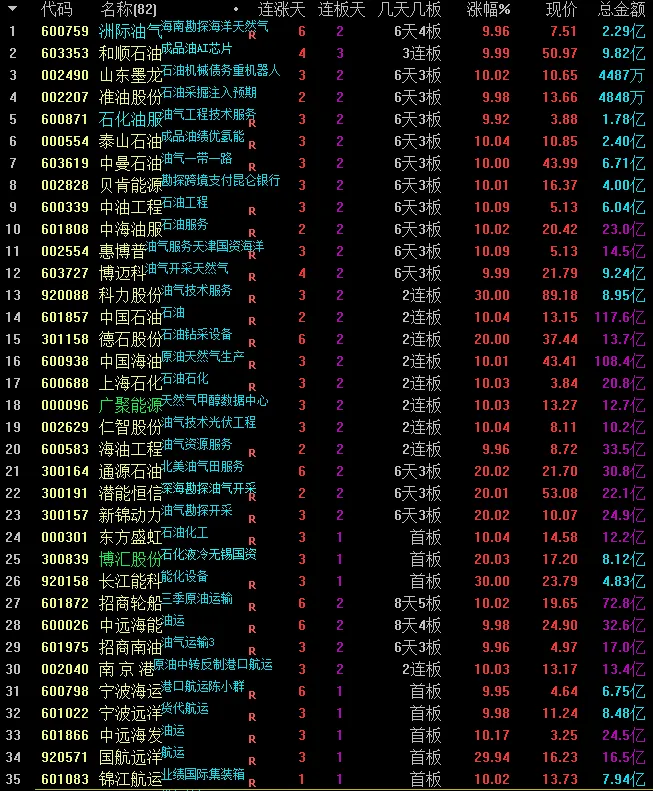 1、12号油运势72亿,10号钨矿62亿。30亿以上的有算力、油气、钨矿。2、上板的一共13个,11个都是油气相关的,另外两个是18号的AI应用、27号的AI军事。3、一边倒的行情,油气方向把资金全部吸走,导致其他的方向的逻辑出现动摇,盘面上跌幅超过-9.9%的有129家。很明显的极端行情!4、今天不仅资源类的回调、科技类的也回调,全市场只要不做油气,今天体验感都很差。不仅大A回调,其他市场尤其是日韩市场跌得更厉害。全市场动荡还是对于中东局势的担忧。虽然说短期内会恢复,但短期是几天,这几天是快速跌还是慢慢跌。这种不确定性预期,也是目前市场回落的主要因素。5、这个市场,就怕你进了油气,然后那边局势缓和,就像年前进了黄金后又开始调整。这种由消息驱动的行情做着并不舒服,市场能回归正常靠自身逻辑才会好做。所以这个位置,减仓或者离场都可以的。正常情况,今天回调,次日反弹一下,如果消息上不能配合,这种混乱极端的行情还是要规避。就算参与油气,也需要找二次机会,但这种二次机会并不是什么好机会。百亿:三桶油上板,有色、CPO、稀土、算力都是回调明显。PCB的15号是维持红盘,后市可以跟踪一下。70亿区间:两个板的还是油气相关的。其他的也是油运、甲醇,还有一个华为算力的扛住。1、紫阳东路:三日进油气1.57亿,今日进光伏1.57亿