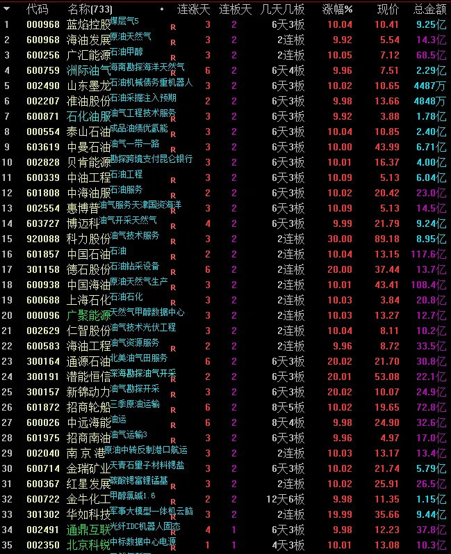 4、章盟主:三日进油气1.37亿。三日进航运1.55亿。