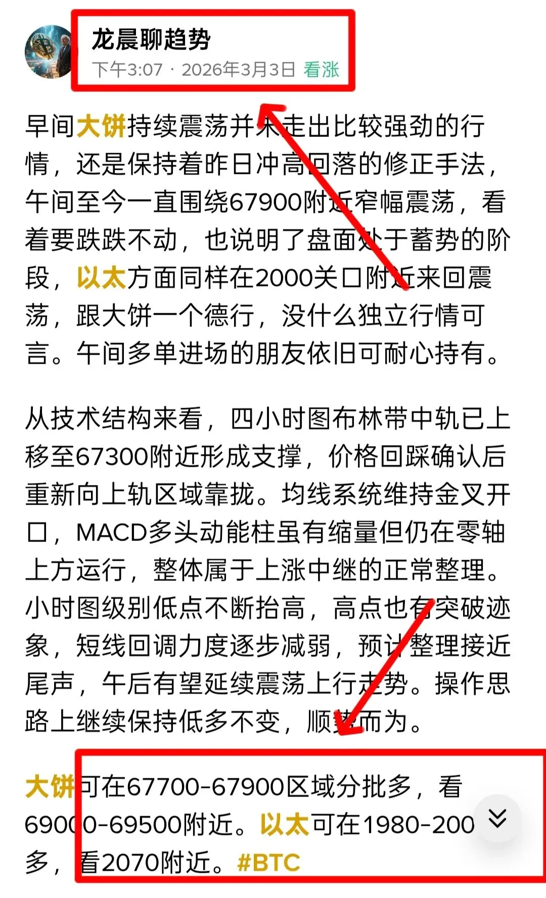 大饼可在67700-68200多,看70000附近。姨太可在1950-1975多,看2050附近。