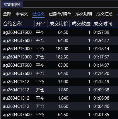 晚上夜盘白银行情尚可,但是大跌来临之际也不如以往一样坚决空,这个是问题。白银一度跌超10%,随后慢慢拉起,比黄金狂。逮住机会还是要空。黄金白银过了1点后,盯盘的都睡觉去,合约流动性变差了。波动幅度小了,太累了。牛马下班睡觉去。