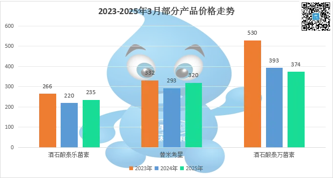 Amprolium hydrochloride, with a market price of 330, has seen an upward trend in March.