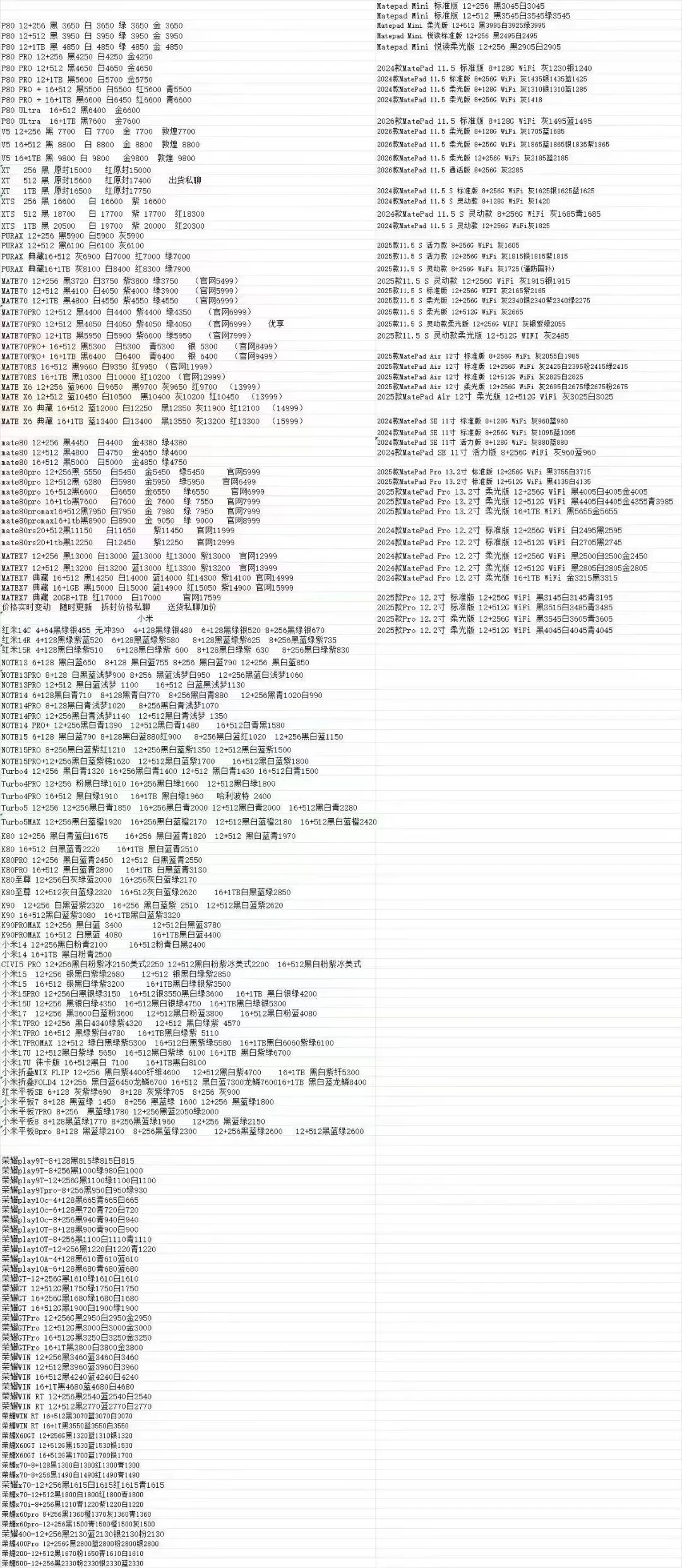 华为小米手机行情
